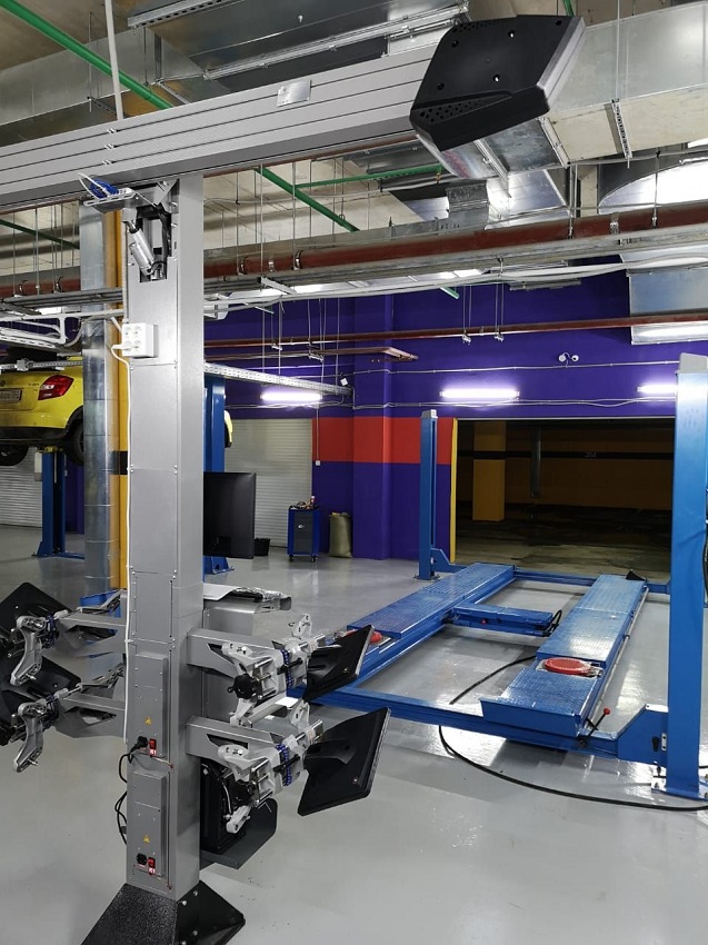 Оборудован ограничителями заезда, предотвращающими скатывание автомашины.