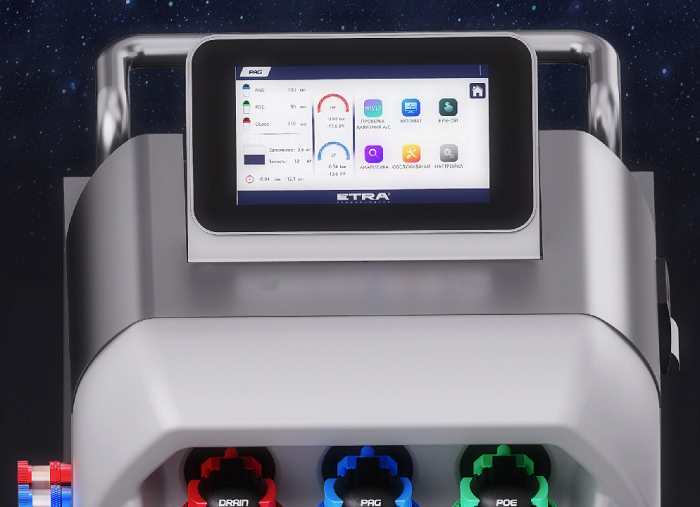 ETRA™ Model 5 - новейшая установка для заправки и обслуживания систем автокондиционера с сенсорным экраном.