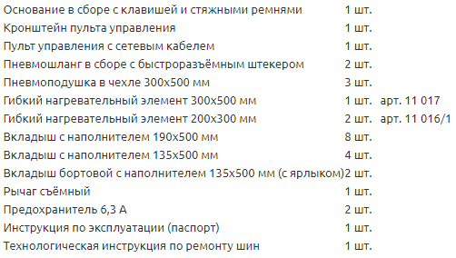 Вулканизатор Комплекс-2М (3 гибких нагревателя и 3 пневмоподушки в чехлах) предназначен для ремонта повреждений на беговой дорожке, плече и боковине шин грузовых автомобилей с посадочным диаметром от 16” до 25”, шириной профиля от 225 мм до 520 мм. В составе вулканизатора используется независимая клавиша с корсетом, которая позволяет производить ремонт повреждений шин без использования основания либо с использованием облегченного основания (входит в комплект).