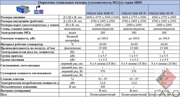 Не зависимо от исполнения, покрасочная камера МИНИ-MIDI снабжается двумя электромоторами, потребляемой мощностью 8,4 кВт.
